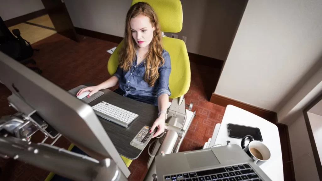 Adjust the brightness setting on your gadgets so they don’t bother you, and get a glare-reducing filter for your monitor. Settle into a seat with good back support and make sure your laptop or e-reader is at eye level